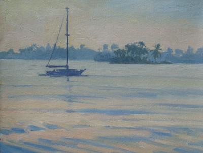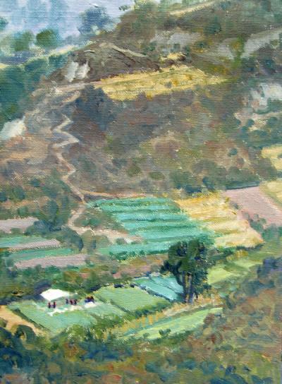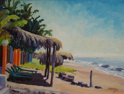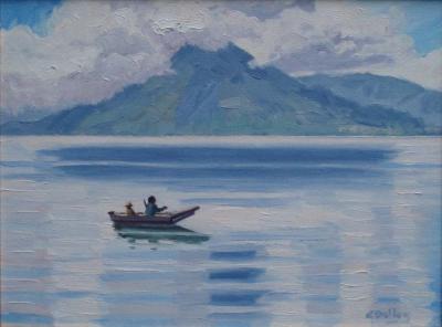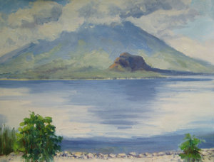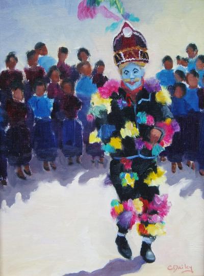 These plein air paintings are from Lake Atitlan where the artist has a home in Panajachel, as well as from Monterico and the Rio Dulce. The ceremonial scenes were done in the studio from photos taken by the artist.
