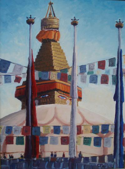 16" x 12" oil on linenThe Great Stupa at Boudha near Kathmandu, Nepal with prayer flags |