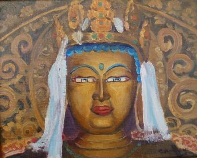 8" x 10" oil on linenThis is one of the many large Buddhas at the Kumbum in Gyantse, Tibet |
