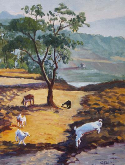8" x 10" oil on linenThese baby goats were jumping with delight outside Kathmandu in Nepal (collection of the artist) |  |